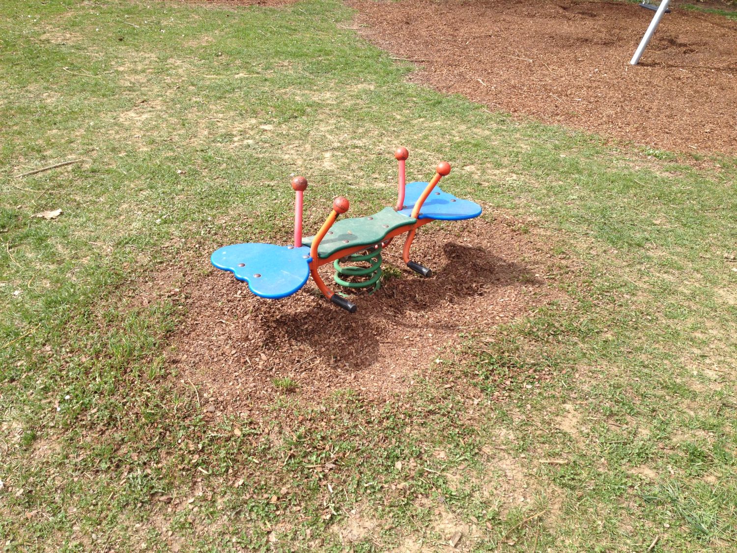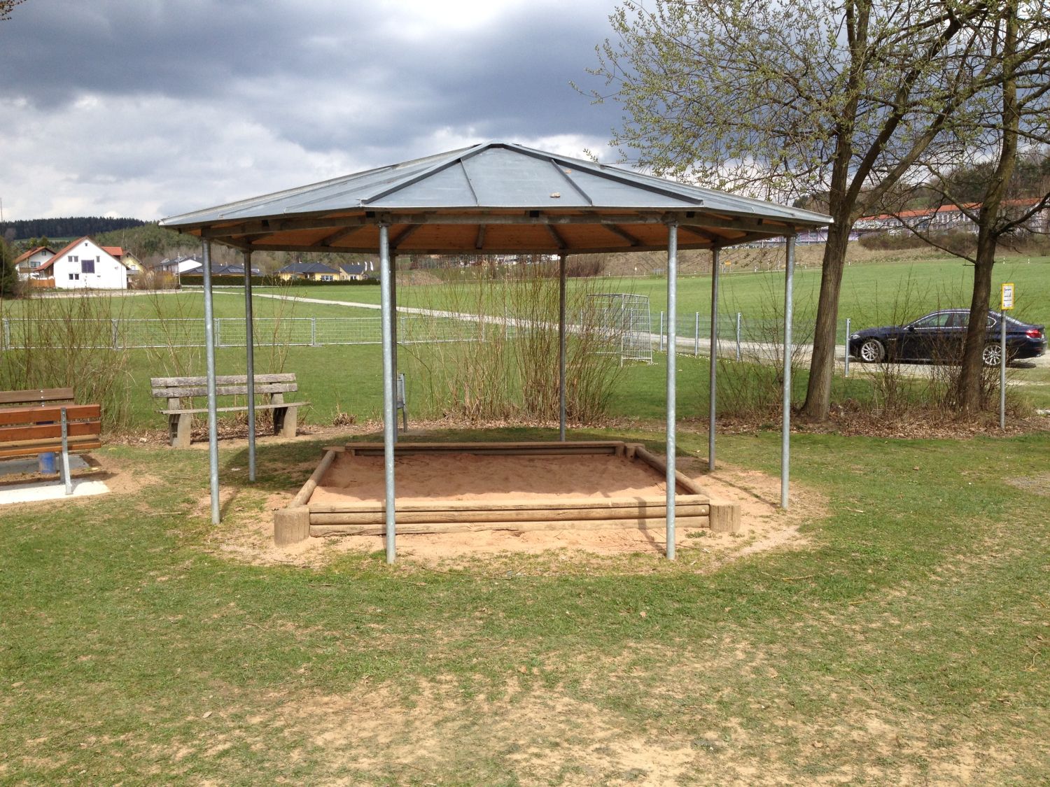 Seilbahn, Sandkasten, Wippe, Schaukel, Sitzbänke, Turnstangen, Parkplatz