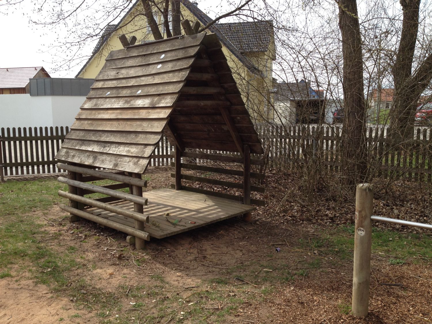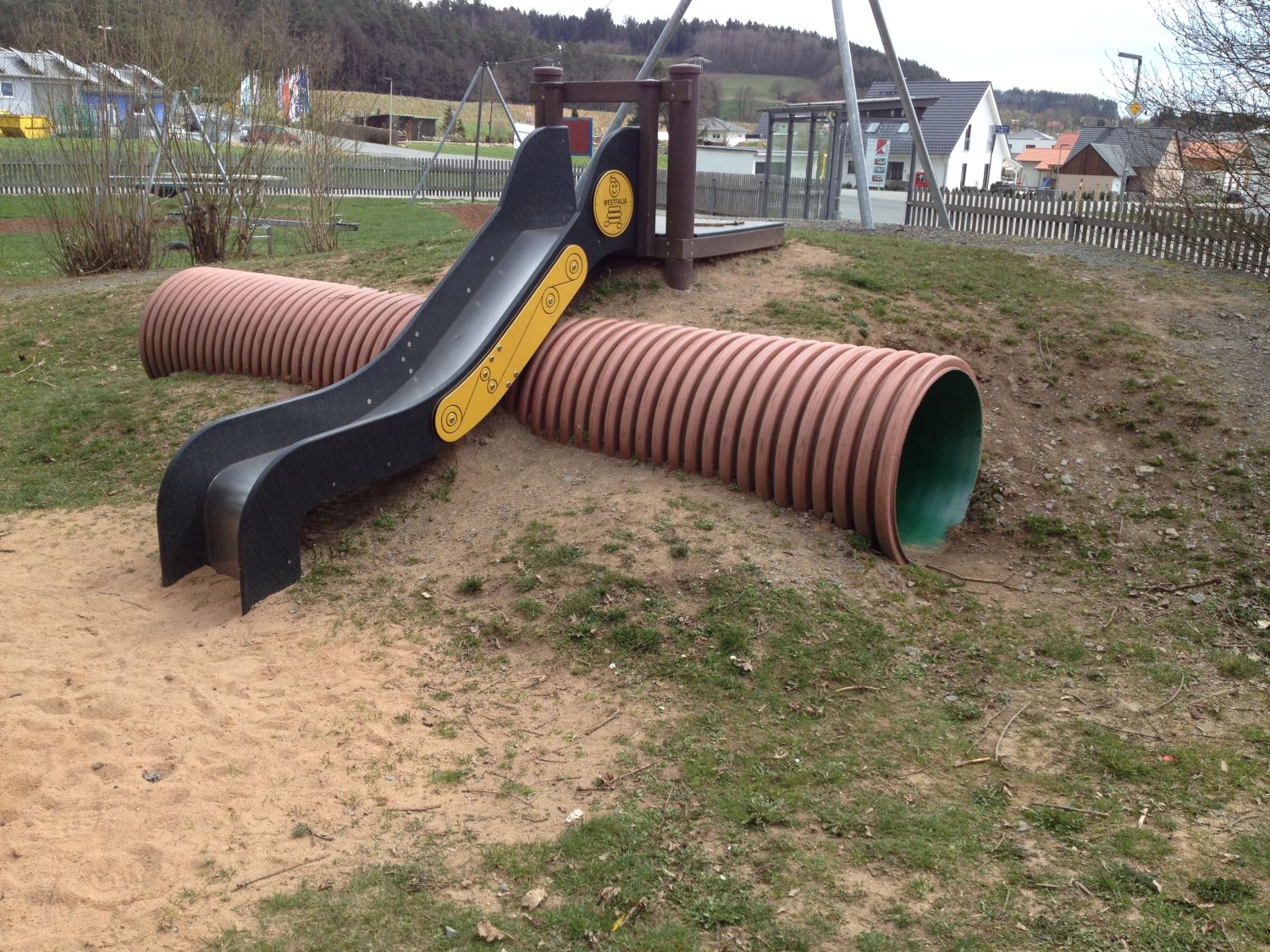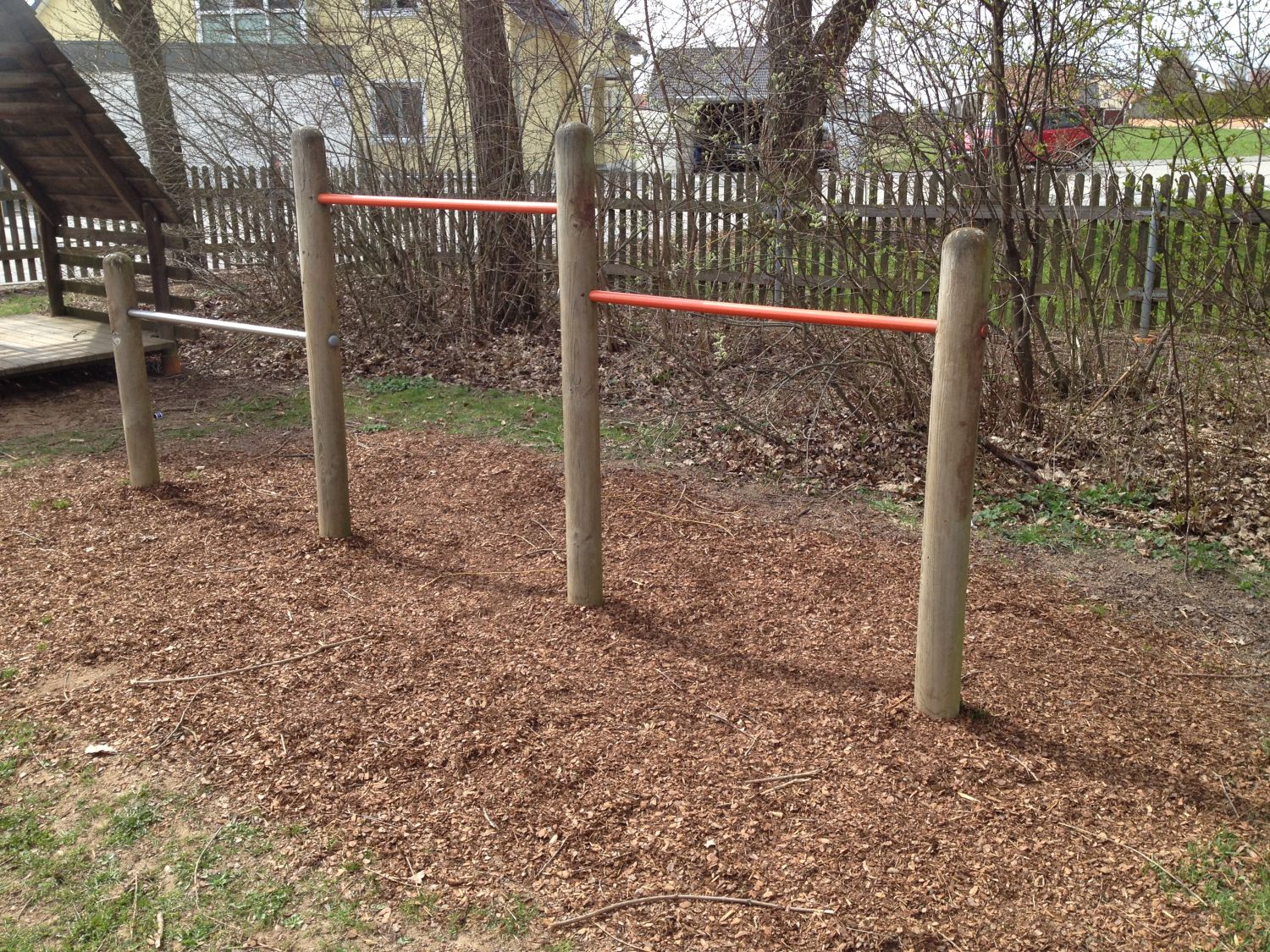 Sandkasten, Rutsche, Kletternetz, Kletterhaus, Turnstangen, Sitzbänke, Schaukel, Federtier, Bolzplatz, Seilbahn, Vogelnestschaukel